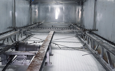 冰勛制冷混凝土冷卻降溫解決方案包含大型片冰機(jī),冰塊生產(chǎn)后通過重力掉入耙冰區(qū),再通過自動(dòng)耙冰系統(tǒng)將冰塊輸送到攪拌倉(cāng),中間配置冷藏儲(chǔ)冰庫(kù)用于冰塊的暫存。
